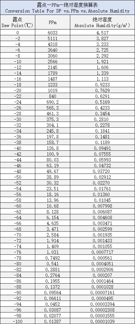 露點(diǎn)換算為PPm